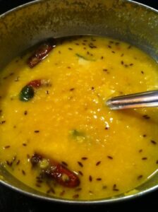 Pressure cook toor daal. For the tadka- heat ghee, add whole jeera, when they darken, add hing, haldi, curry leaves,
